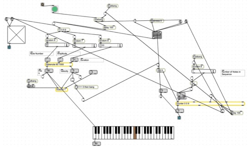 The program used by the artist to create Fibonacci Chimes is Max/MSP visual programming language. This programming language allows the user to create unique “code” that can be created to do anything the programmer can imagine given the parameters of the language.
