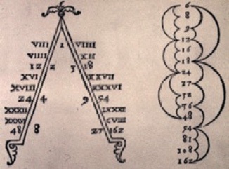 Soundwaves are comprised of a compression/rarefaction wave, can create a pattern perceived as pitch. Over the Millennia, pitch has been assigned to corresponding notes relative to the numbers of compression/rarefaction cycles (currently 440 cycles per second is an “A”). As described above, Pythagoras related the ratio of 2:1 to the perception of the octave, therefore, all like-notes in any traditional musical scale (A’s, B’s, C’s, etc.) are all mathematical products of two.
