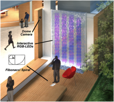 As with all the works, some of patterns will be obvious, others will be subtle and more difficult to detect. The overall goal is to create a work of art that changes in real time to the motion and location of the viewers to create sound and color light interactions that use the patterns of the Fibonacci sequence. That sequence can be perceived or not, but the goal is the ambient creation of sound of light that is both pleasant and curious.